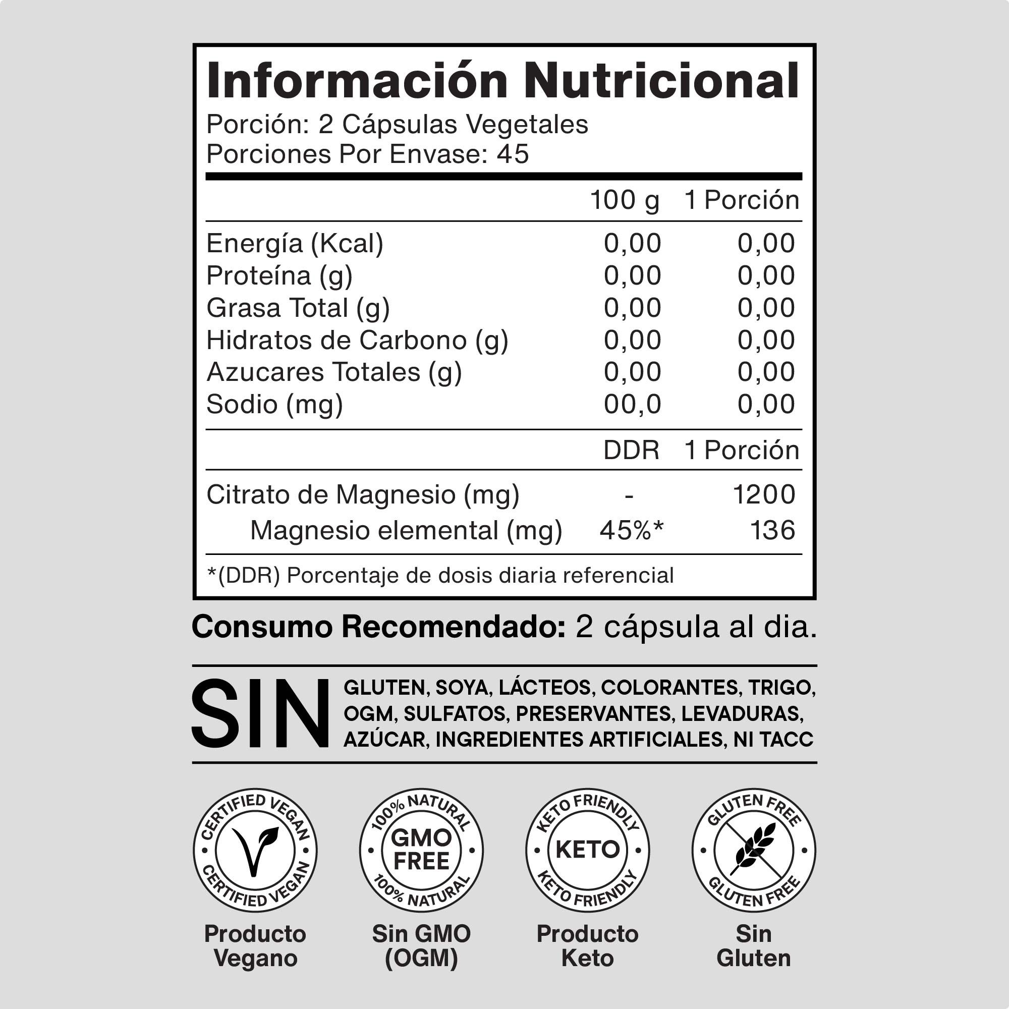 Citrato de Magnesio 1200mg - 90 Cápsulas